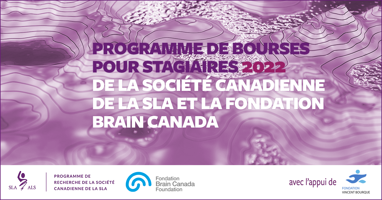 TORONTO, Le 24 novembre 2022 – La Société canadienne de la SLA et la Fondation Brain Canada contribuent aux découvertes et aux traitements innovants de la sclérose latérale amyotrophique (SLA) en finançant de nouvelles recherches prometteuses. Ensemble, elles investissent un total de 390 000 $ pour financer trois bourses doctorales et une bourse postdoctorale. Ces projets s’appuieront sur les connaissances actuelles des processus biologiques qui conduisent à l’apparition et à la progression de la SLA et exploreront de nouvelles cibles thérapeutiques et une éventuelle stratégie de traitement de la SLA.