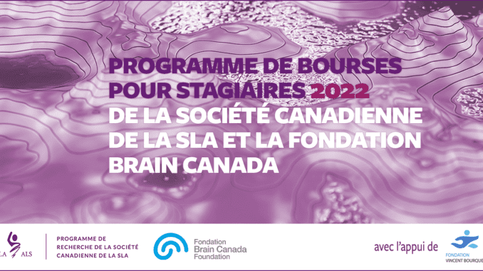 Le financement de la bourse postdoctorale 2022 a été rendu possible par la Fondation Vincent Bourque, qui a généreusement versé 82 500 $ à la Société canadienne de la SLA, somme égalée par la Fondation Brain Canada par l’entremise du Fonds canadien de recherche sur le cerveau (FCRC).