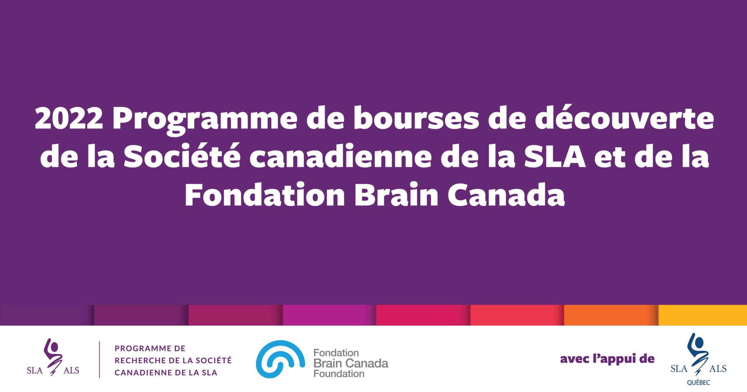 Le financement d’une bourse de découvertes a été rendu possible grâce au Fonds Dr Jean-Pierre Canuel – SLA Québec, qui a généreusement contribué 150 000 $ à la Société canadienne de la SLA, somme égalée par la Fondation Brain Canada à travers le Fonds canadien de recherche sur le cerveau (FCRC).