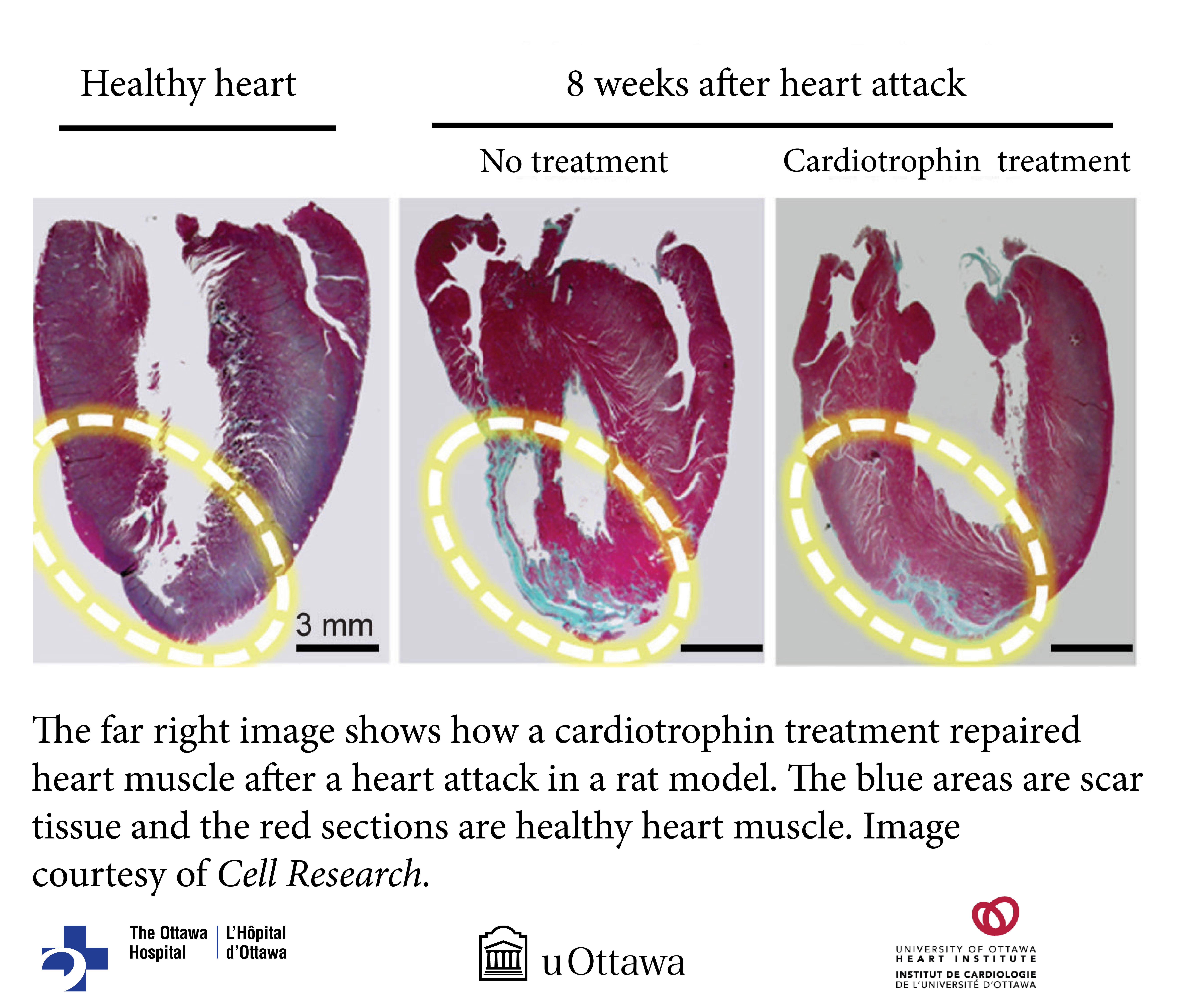 AUGUST 8, 2017 – OTTAWA, ON – Researchers have discovered that a protein called cardiotrophin 1 (CT1) can trick the heart into growing in a healthy way and pumping more blood, just as it does in response to exercise and pregnancy. They show that this good kind of heart growth is very different from the harmful enlargement of the heart that occurs during heart failure. They also show that CT1 can repair heart damage and improve blood flow in animal models of heart failure. The results are published in Cell Research. The research team is from The Ottawa Hospital, the University of Ottawa, the University of Ottawa Heart Institute and Carleton University.
